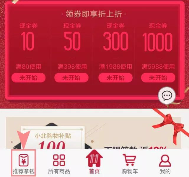 第一步:点击菜单【双11狂欢】,进入双11主会场,点击底部【推荐有钱】