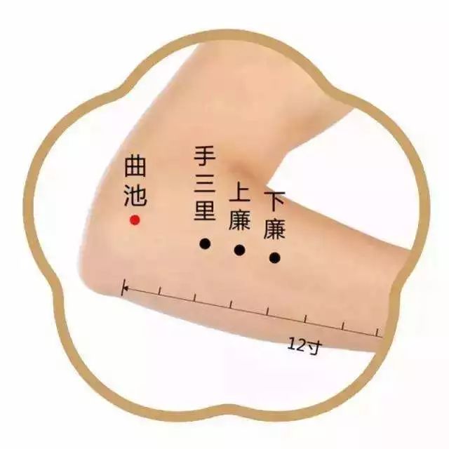 位置:手阳明大肠经合穴,完全屈肘时,位于肘横纹外侧端处。