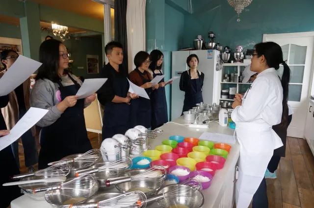 小伙伴们也动手操作,同时成为搭档的小小助教,协助对方完成戚风制作,在制作过程中香雪老师亲自指导大家手法和需要注意的细节,大家相互配合,一切都愉快而顺利的进行着…