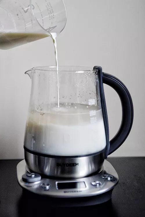 3.将椰奶和西米倒入煮芋头的养生壶中搅拌均匀即可。