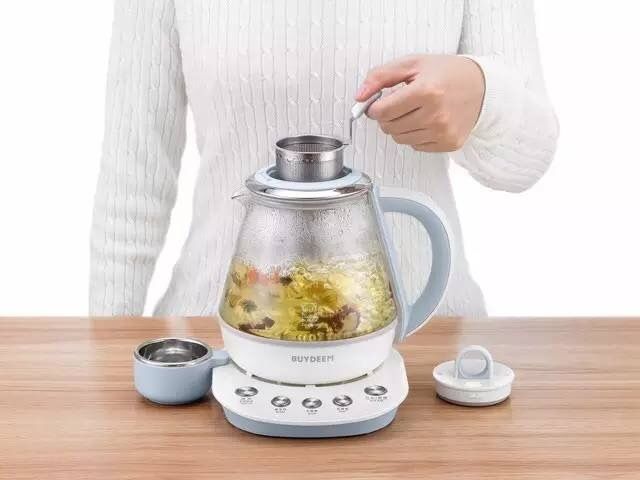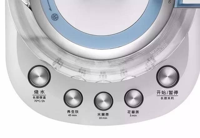 不同于小北家其他壶型,设计师根据这款壶的特性,量身设置了4种常用模式:烧水、养生饮(45分钟)、水果茶(10分钟)、花草茶(5分钟),茶水、汤水随心煮。