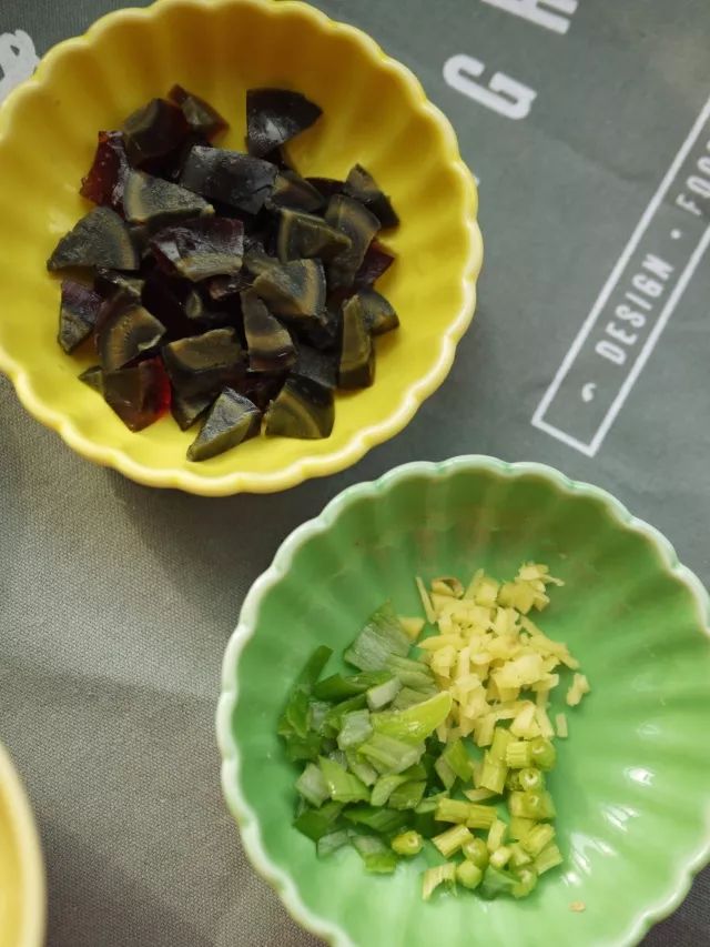 1.松花蛋先煮一下,蛋会更凝固,比较好切。先放入的皮蛋会在煮的过程中融化在粥中,最后放入另一半皮蛋可以增加粥的黏糯口感。