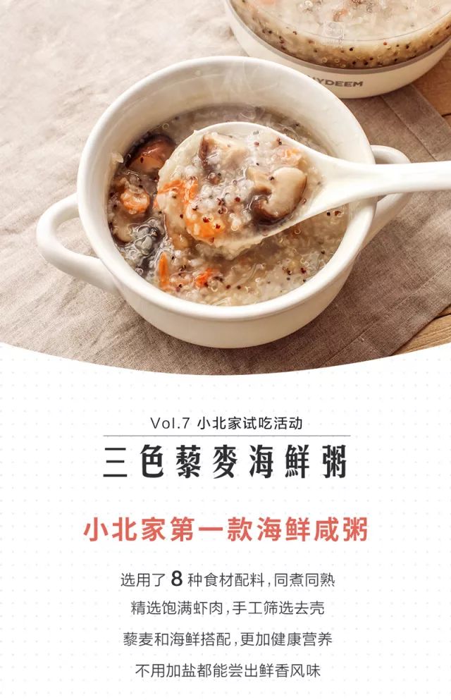 试吃大神们收到「三色藜麦海鲜粥」,各位不要忘记你们对小北许下的“山盟海誓”:【拍好看的照片】&【对产品进行试吃反馈】