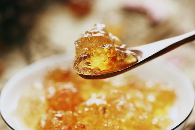 桃胶自古便是养颜圣品,因滋阴美容,有“平民燕窝”的美誉。它晶莹如琥珀,煮着吃有一种难以言说的Q弹。