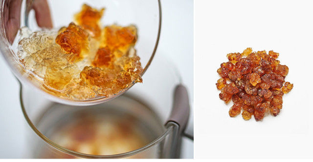 ▲ 桃胶中含有少量杂质,属正常现象,泡发后可剔除。