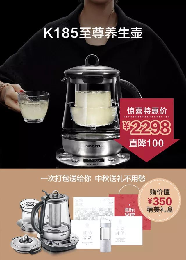 最后一批仅剩100台,因为很多小伙伴都说需要一台有预约功能养生壶,所以最后100台,K185破天荒降价,买还赠送350元的赠品!