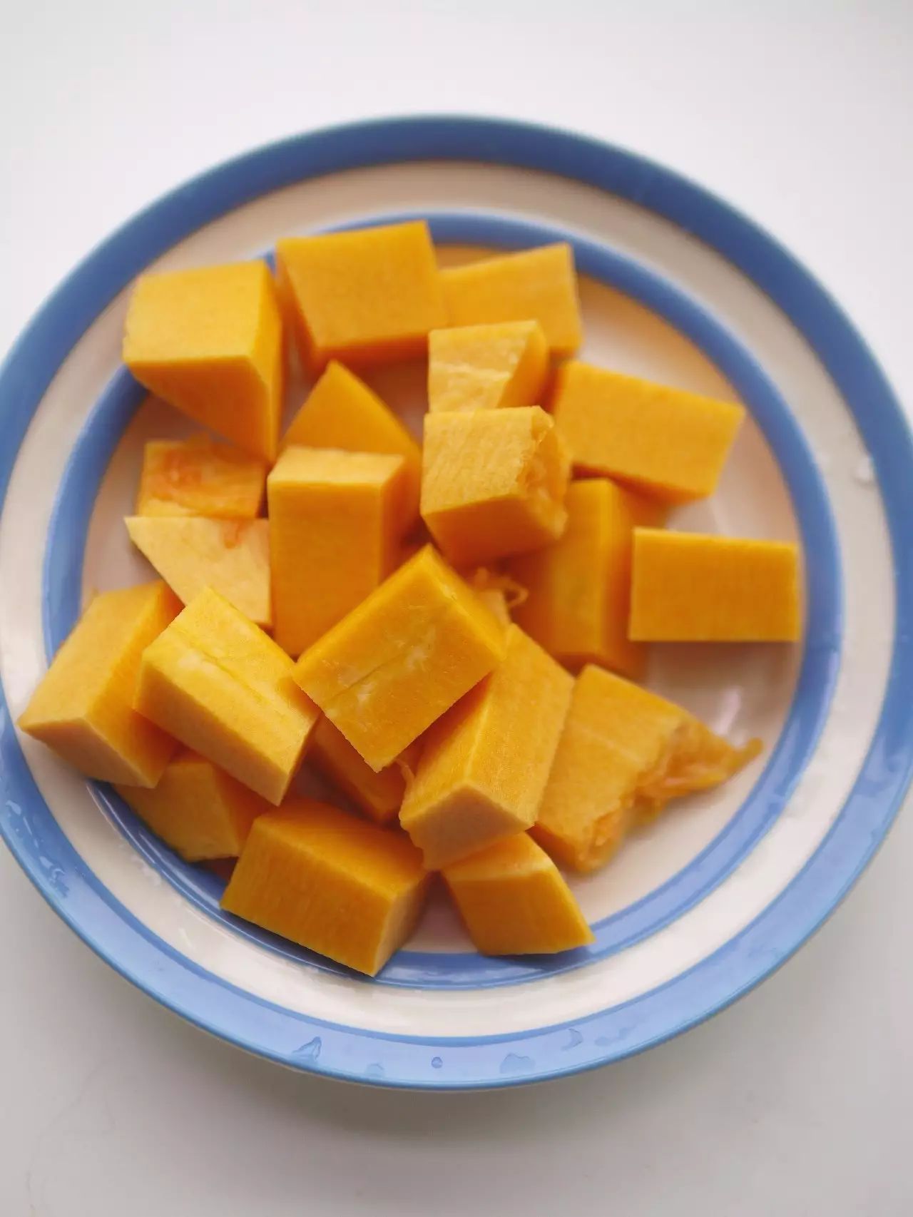 2.南瓜去皮去瓤切块;