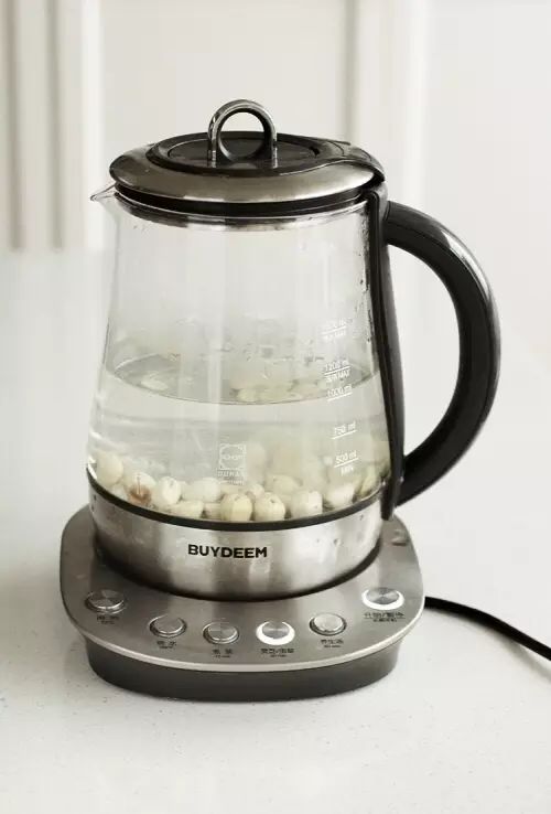 8.选择养生汤程序,养生壶会慢炖银耳,慢慢地会产生很多胶质,可以经常搅拌一下,可以析出更多胶质。