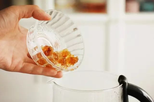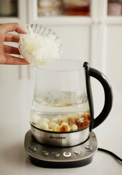 7.准备好的桃胶这时候也可以一起放入北鼎的养生壶中;