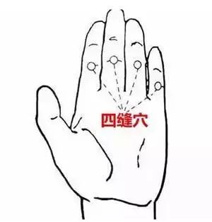 四缝穴是消宿食、化积滞的专属穴。取穴位置在第2、3、4、5掌面第1、2节横纹中央点。四缝穴原本是用来治疗小儿消化问题的穴位,但成人按摩“四缝”效果也较好。