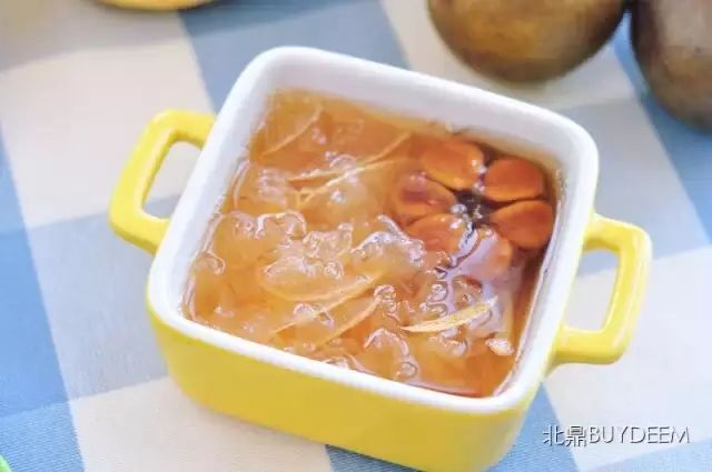 1.取银耳1/4朵,提前2小时泡发,洗净,撕成小朵。然后放入北鼎养生壶中,加水至1000ml,启动养生汤模式。