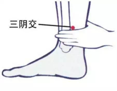 摩擦法:手掌擦热后摩擦三阴交穴,20次左右。
