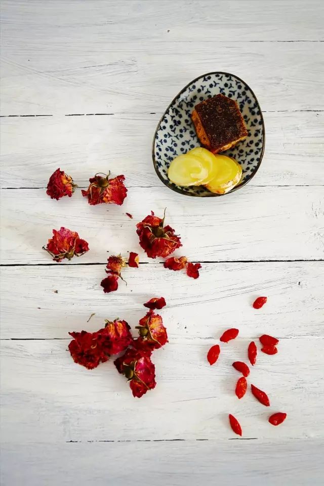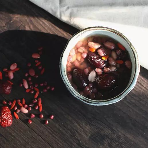 红豆、红枣、花生、枸杞、红糖,五种红色的食材碰撞在一起,化作你脸上的天然腮红。