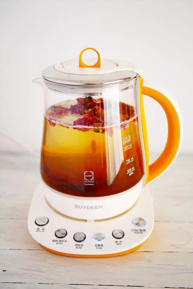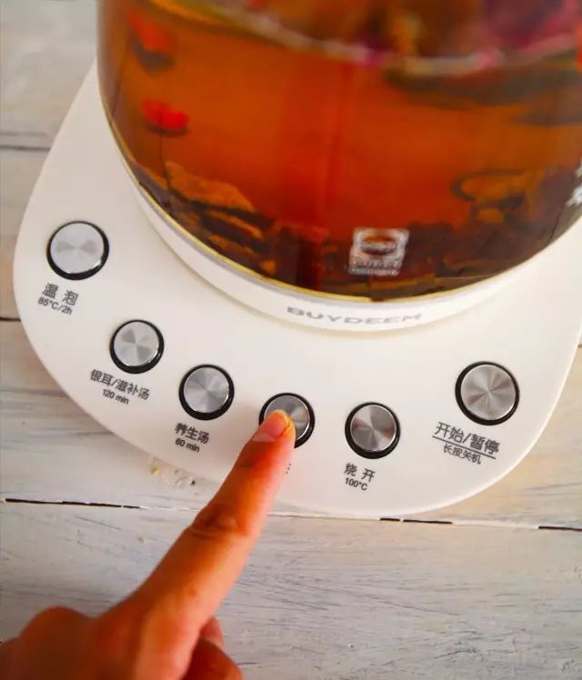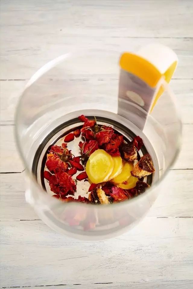 1.将红糖敲成小碎块,全部材料洗净,连同红糖一起放入养生壶;
