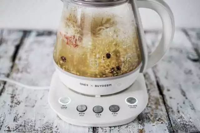 1.食材混合后清洗干净,放入养生壶中,加水到800ml处,启动烧水模式。待程序结束后长按烧水键再按开始转保温模式浸泡半小时。