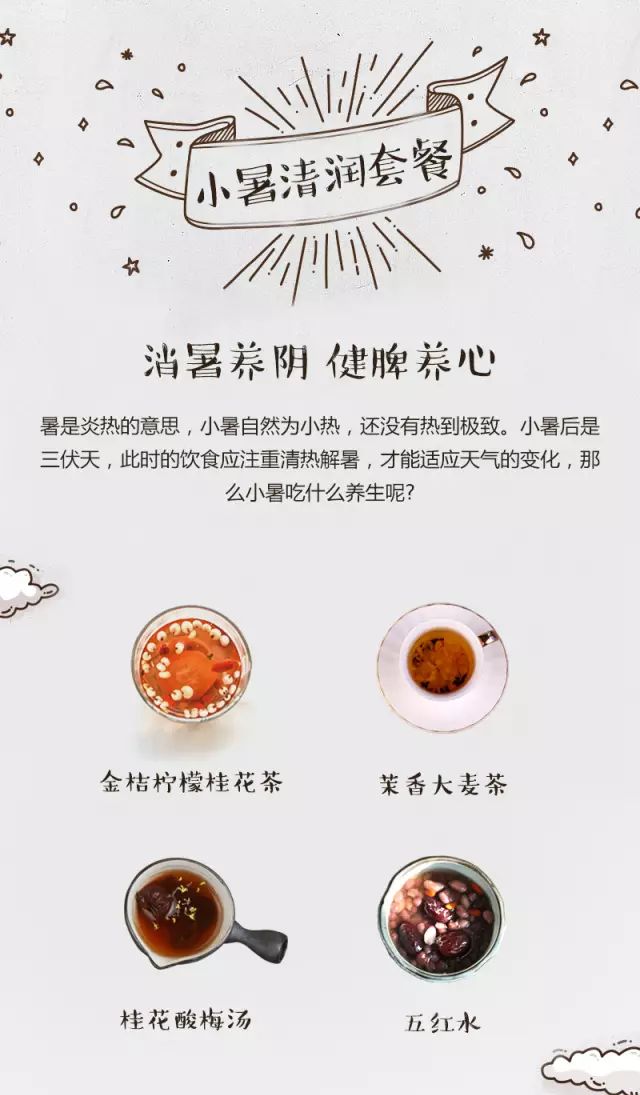 当时推出小暑套餐的时候,江浙沪地区已经在往40℃的高温上冲,而我们的营养专家除了为大家搭配上清凉的轻饮品外,还不忘配上补血的五红水,别以为夏天不用补血,这时候才是补血的最好时期!