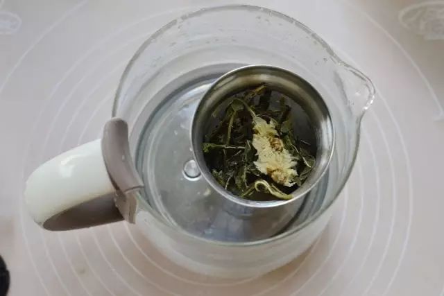 1、将冬桑叶、菊花、甘草过水清洗一下;