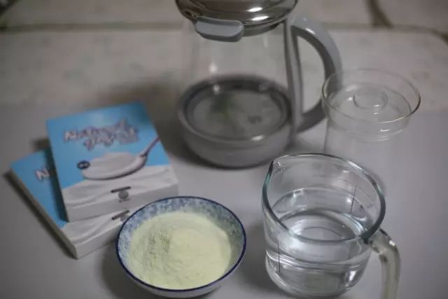 2.将酸奶粉倒入炖盅内,往炖盅内加入400ml的水,搅拌均匀至无气泡,盖上炖盅盖,壶内加入1000ml的水,将炖盅放入,启动【酸奶】模式。