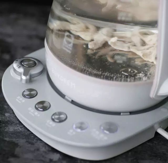 Step 1:在养生壶内倒入500ml水,选择烧开模式,待水开后倒入猪/鸡肉焯烫一下。
