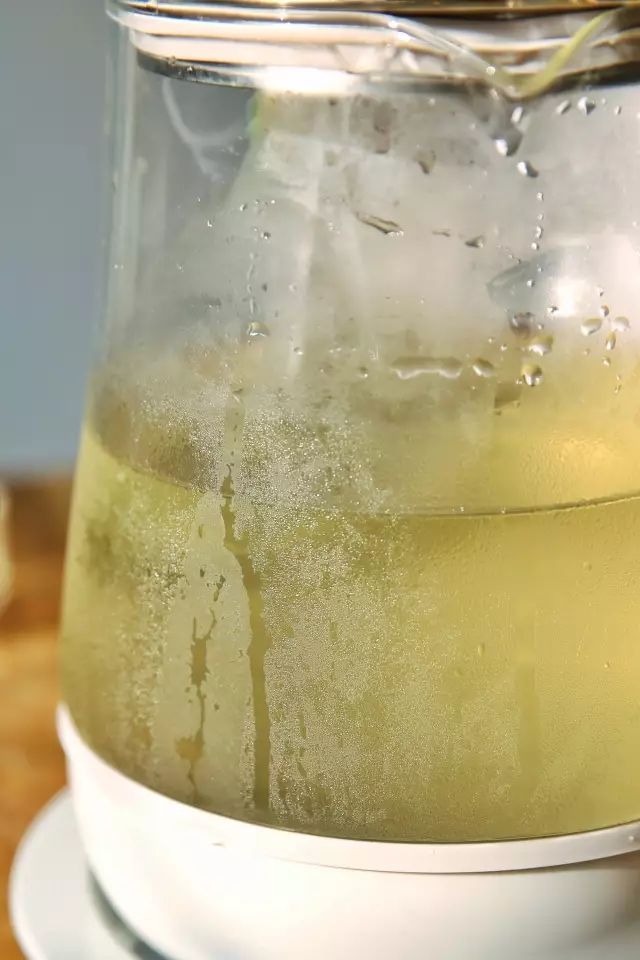 1.将绿茶放入养生壶内,倒入1200ml常温水,静置4小时。