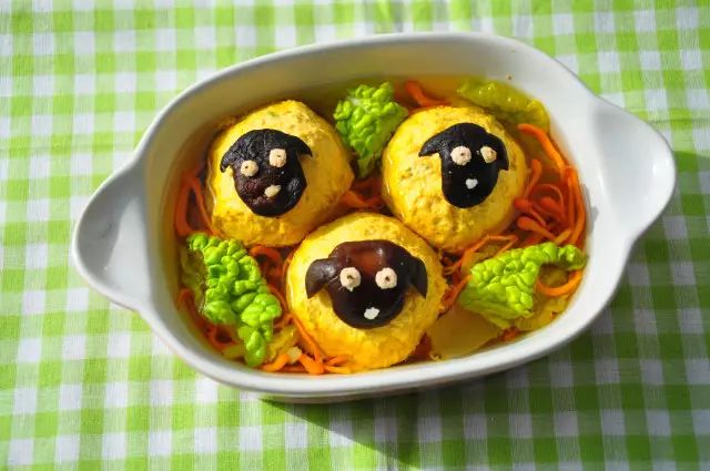 看起来倒是挺简单的,而且因为有蔬菜搭配,这道特别适合做给小朋友去食用,但最后将香菇剪成羊头形状的步骤很容易把强迫症给逼死...