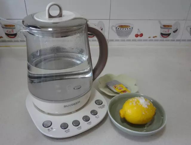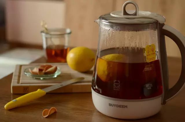 ②养生壶内加入1200ml水,将柠檬和茶叶放入养生壶内,开启花果茶/花草茶/水果茶模式。