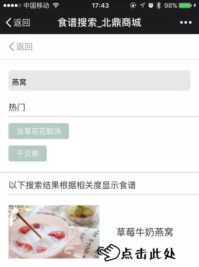 第三步,输入你想要搜索的【食材】/【汤水品】/【功效】(以燕窝为例)