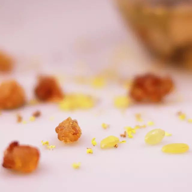 未见桃花,先识桃花泪,桃花泪,就是桃胶。由桃花树的树皮里分泌出来的油脂,形状似琥珀。