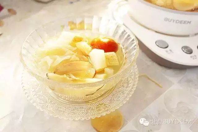 1.燕窝洗干净后,先浸泡2小时。燕窝、枸杞、冰糖和水放入炖盅中,水大概是炖盅的一半。