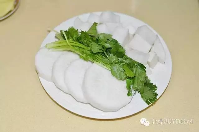 1.将羊排切块后泡出血水,白萝卜洗净切块;