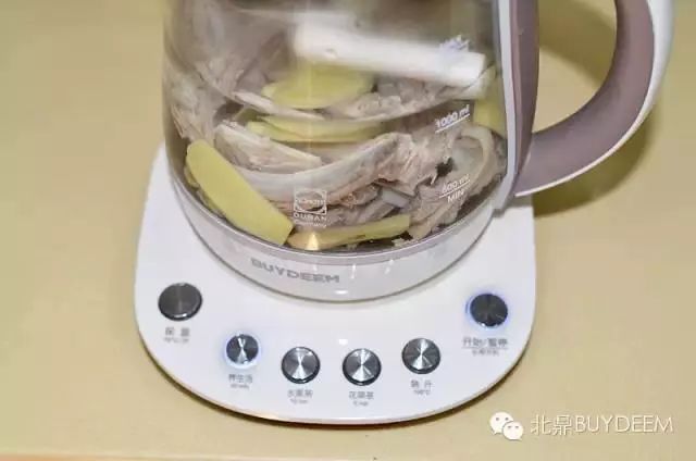 4.捞出羊排,汤水倒掉,洗净养生壶后将剩余材料加水1200ml,开启养生汤/甜品糖水/滋补汤模式。