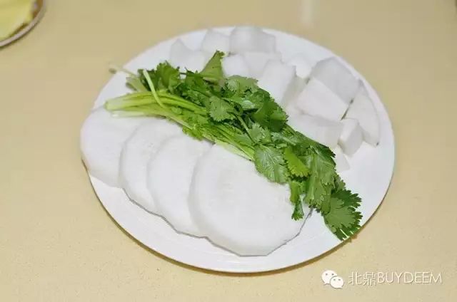 2.白萝卜200g洗净切四个大片,剩余部分切成小块;