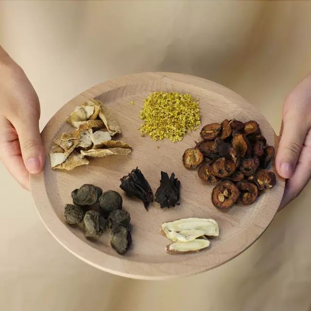Step 1:将乌梅、山楂、甘草、洛神花洗净,放入养生壶,再加入陈皮,加水至1.2L。