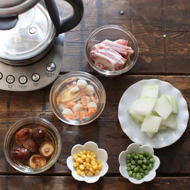 干贝干虾干鲍鱼、干香菇、猪骨、玉米、豌豆、冬瓜