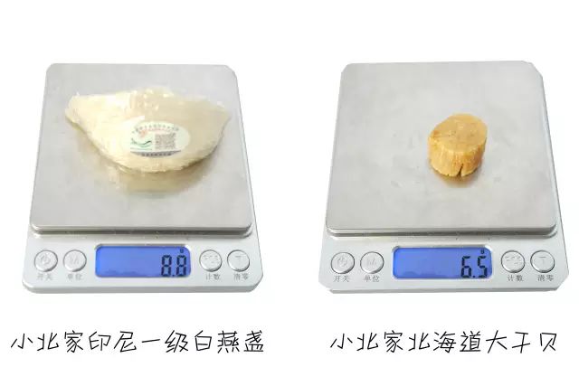 要不是小北拿出镇店之宝超大白燕盏,可能就要输给这个超大干贝啦~市面上常见的、某宝售卖的燕窝基本都没有小北家的干贝重呢...