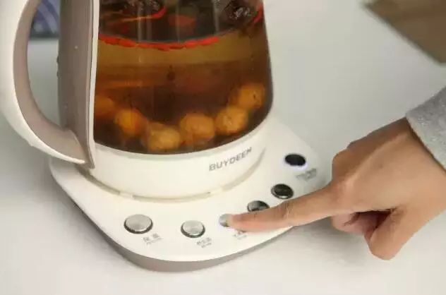 Step 2:所有材料嘉如养生壶,加水至1.2L,启动水果茶模式,约5分钟。