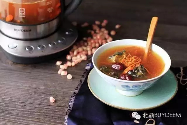 Step 3:40分钟后加入红枣、虫草花和枸杞;待养生壶自动断电,加入少许盐即可。