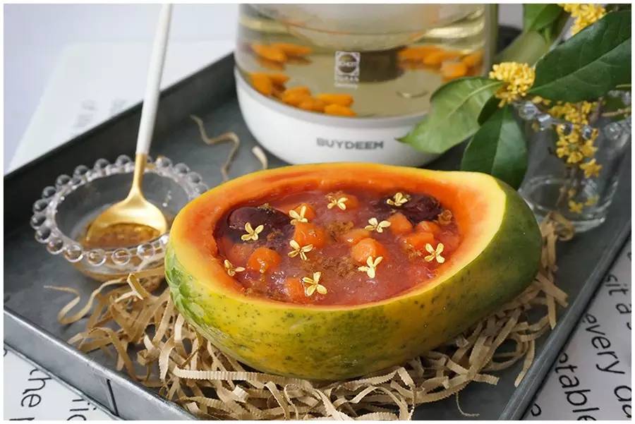 燕窝作为古老的滋补珍品和养颜圣品,具有滋阴润肺,滋补养颜的作用,同時能促进人体新陈代谢,长期食用,让女人由内而外焕发美丽光彩。木瓜素有“百益果王”之称。木瓜助消化之余还能消暑解渴、润肺止咳。它特有的木瓜酵素能清心润肺还可以帮助消化、治胃病;搭配独具秋天风味的桂花蜜,清润滋补。