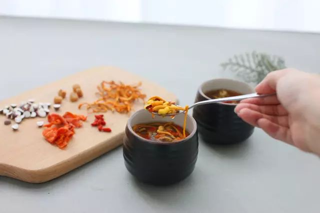 有时候忙完歇下来,看着逐渐浓稠的汤水在炖盅内翻滚,未经染色的橙色虫草花烹煮后愈发的鲜亮了。每一样食材都是干货,经过烹煮之后全都注入了生命力,不再是原先暗淡的色彩了。
