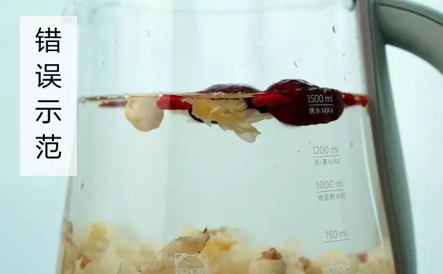 小北也有听到一些朋友说,怕水放少了食材煮不透,所以无视了1200mL的水位线,直接加到1500mL。这里小北还是要强调一下,水千万不要放太多!水和食材建议加至1200ml以下!
