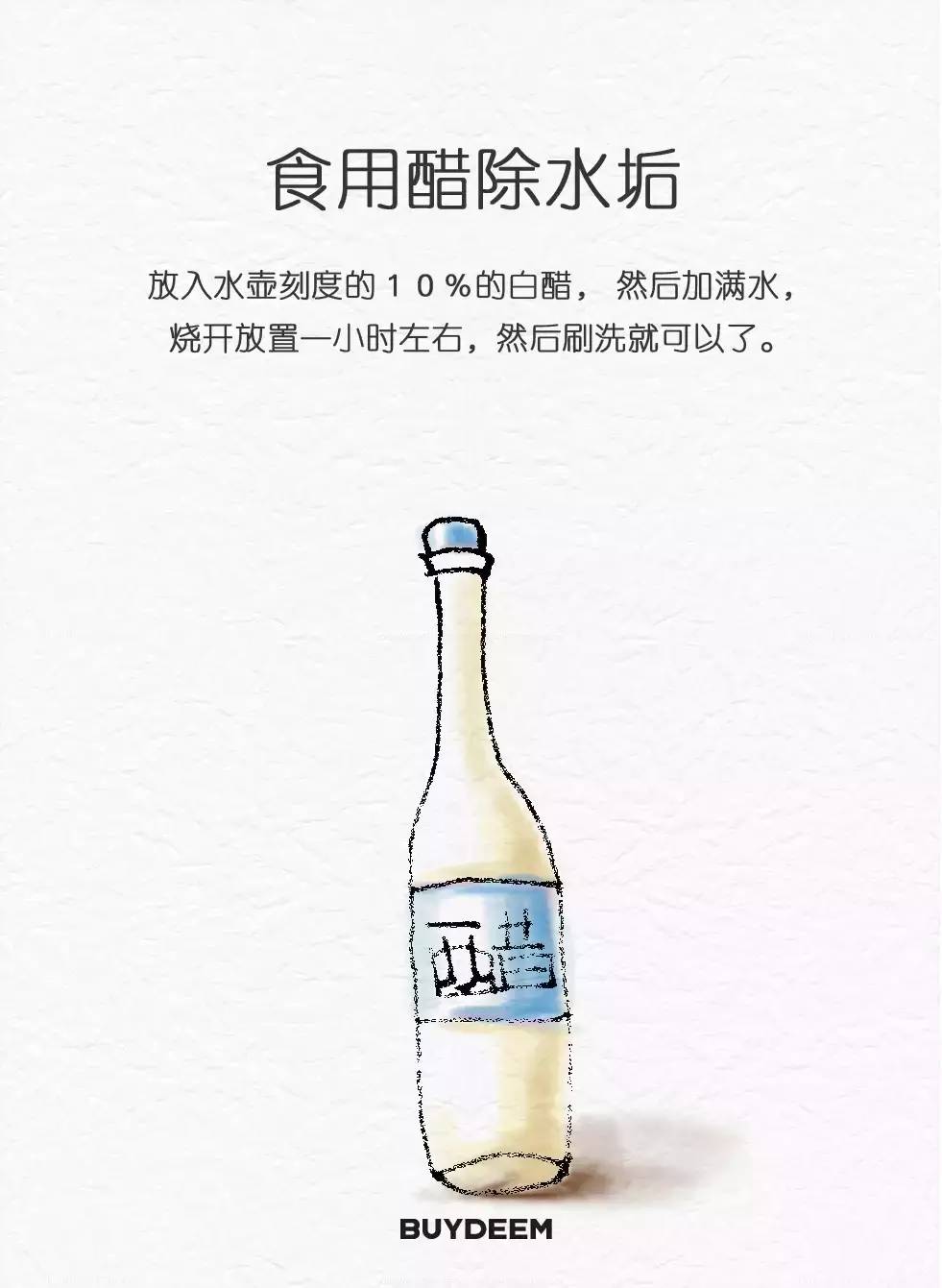 如果你的养生壶出现水垢了,莫慌!除去水垢的方法有很多,小北在这里列举出最常见的三种: