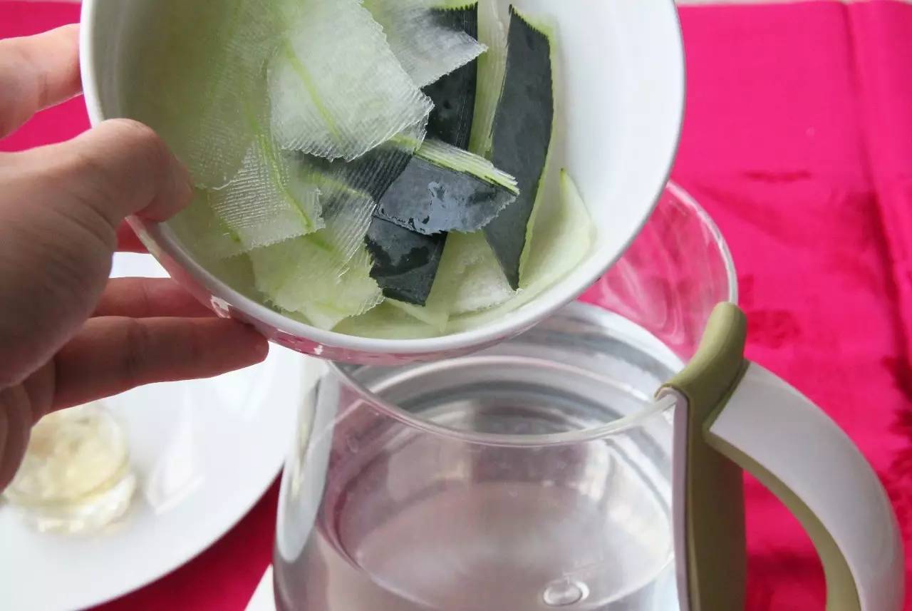 ▼将西瓜皮、冬瓜皮放入养生壶,加水至1500ml,启动养生汤模式。