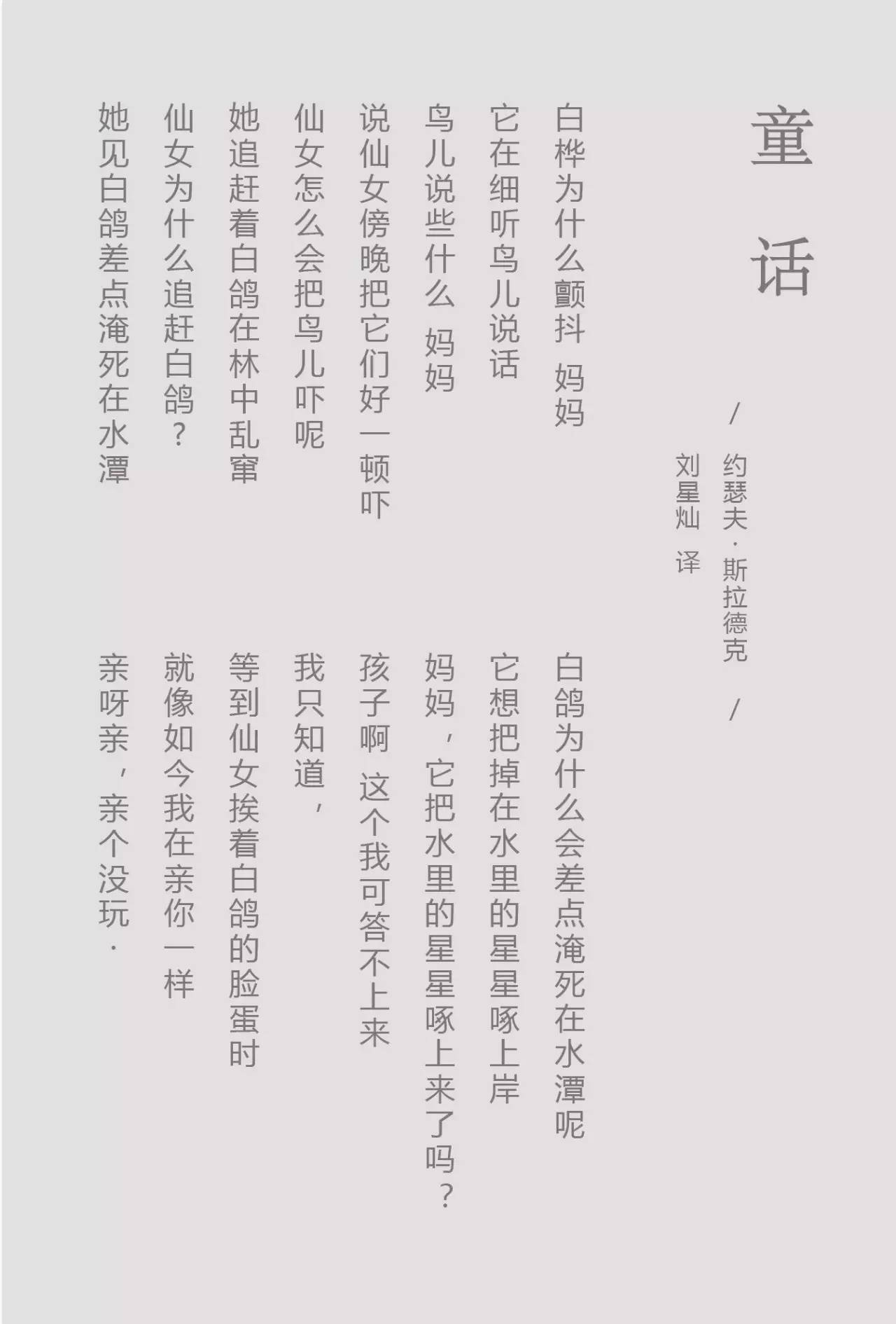这次,诗集生活馆特别邀请著名演员赵子琪和女儿共同诵读了一首来自北欧的诗歌,并制作成一条视频送给大家。诗歌的名字很好听,叫《童话》。