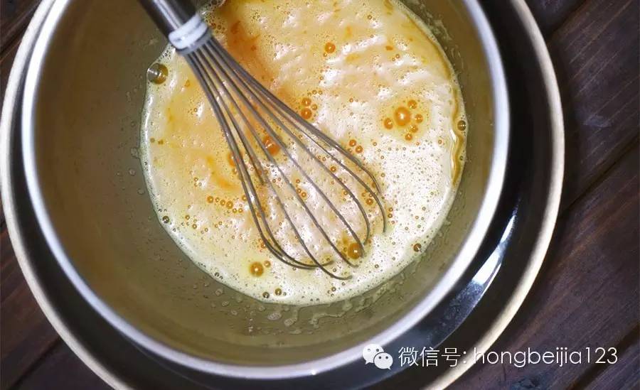▼将软化好的水饴加进搅拌均匀的蛋液中,开始进行全蛋打发;详细步骤请戳→做出完美的全蛋打发;