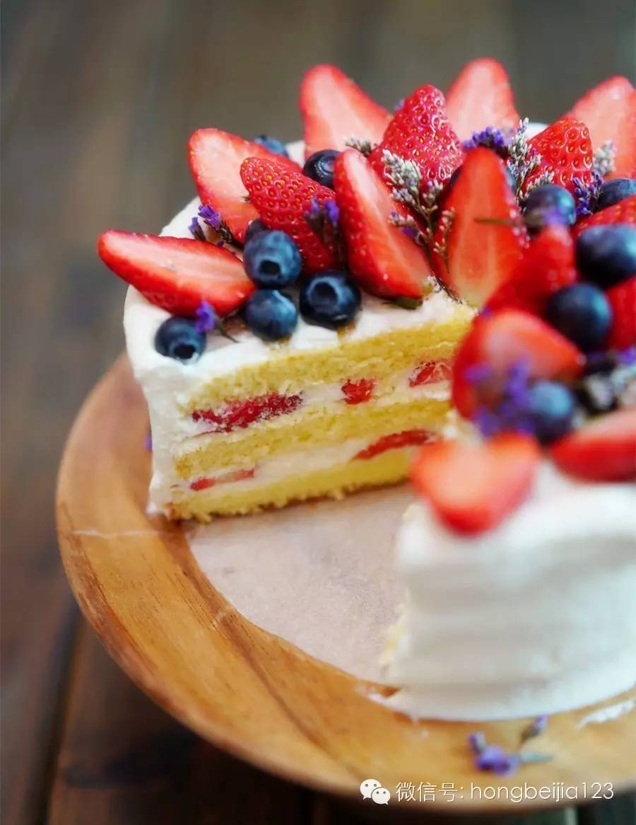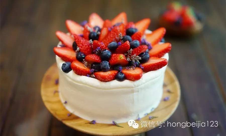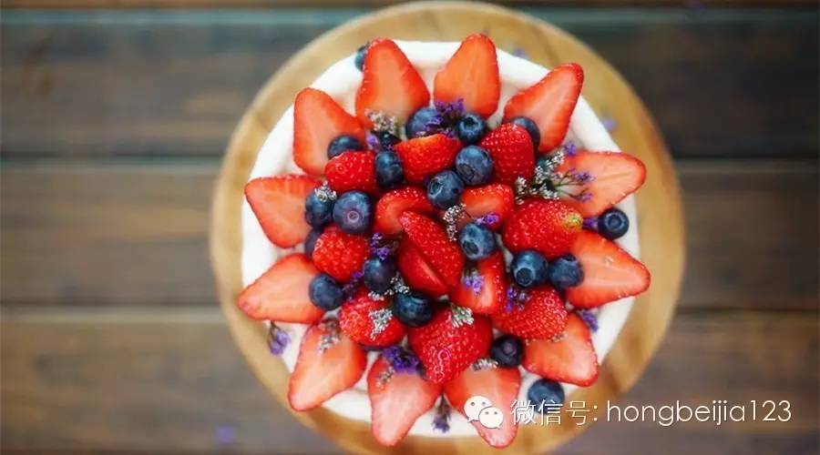 ▼用奶油及新鲜草莓、蓝莓进行装饰。