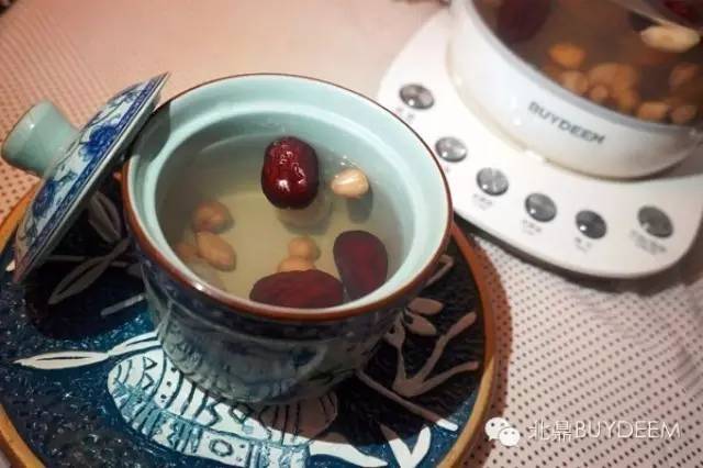 做法:取银耳15g和雪莲子5g泡置清水中2小时。待银耳泡发后去根蒂,洗净,将银耳撕碎成小朵,放入北鼎养生壶。加入红枣、1200ML水,启动养生汤模式,待自动断电后加入适量的冰糖,待冰糖融化即可。