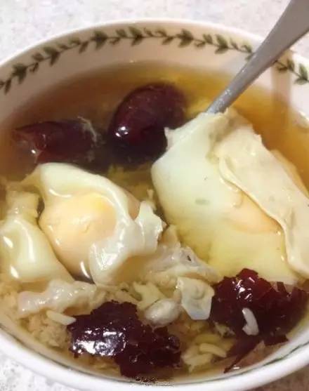 红枣加桂圆煲红糖水,到枣烂、桂圆绵时,打只鸡蛋;继续用小火焐熟鸡蛋。红枣、桂圆和红糖都有补血的功效,煮出的鸡蛋很滋补。