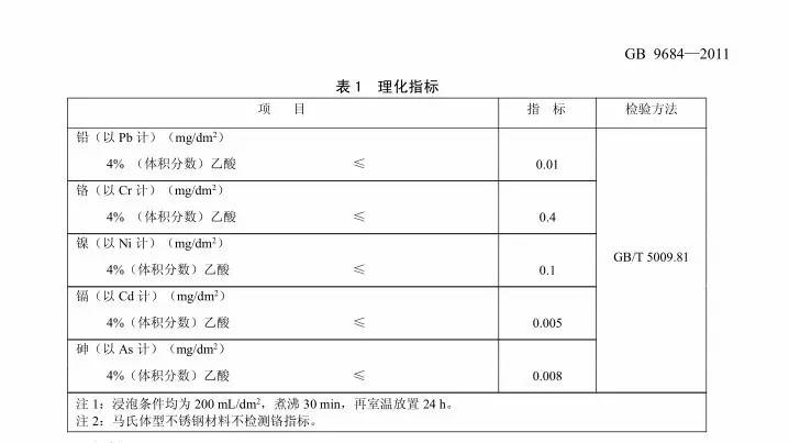 ▲以上为《中华人民共和国国家标准——食品安全国家标准 不锈钢制品》,即GB9684不锈钢制品要求的相关规定。