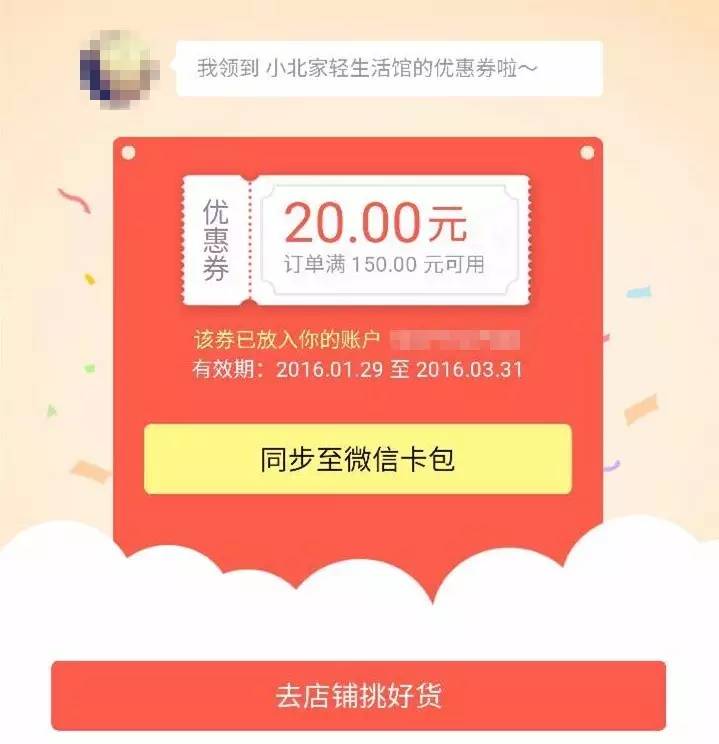 ▼随后会跳出一张优惠券,点击领取优惠券,这张20元优惠券便问问地落入你的口袋了