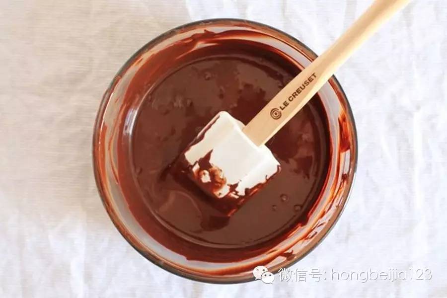 ▼将备好的巧克力开始融化,里面有详细的融化巧克力的温度哦!这一步真的不只是融化巧克力那么简单,状态一定要把握好,如果巧克力水油分离,会非常影响风味;